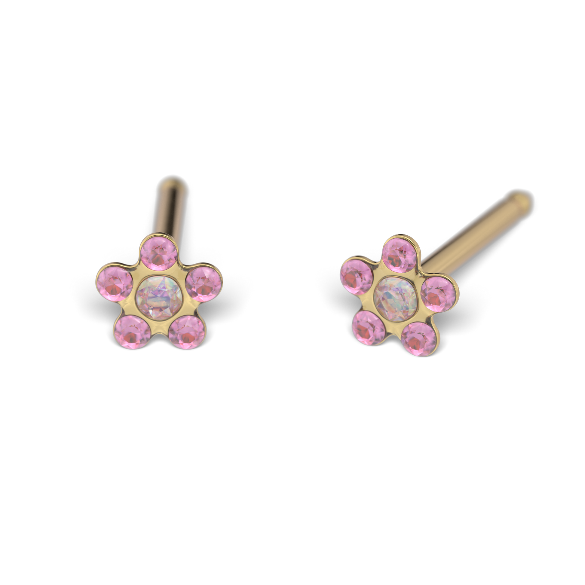 ბავშვის გვირილა, ოქტომბრის ვარდი და AB ბროლი, 3 მმ, მოოქროვილი ჩვეულებრივი სახელურით